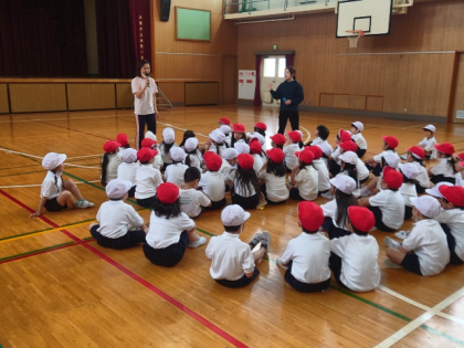 校外学習に向けて整列の仕方などを練習したあと、みんなで「だるまさんがころんだ」や「もうじゅうがり」などをしました。
