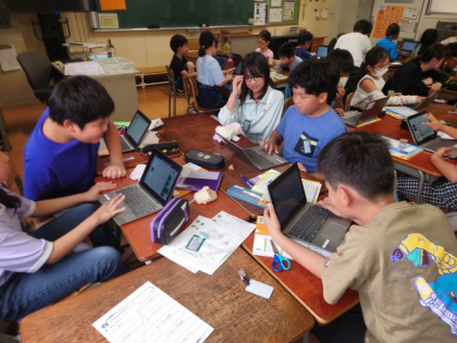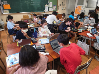 理科の時間は、自分たちで見つけた春の自然を紹介するためのプレゼンを学習用端末でつくっています。