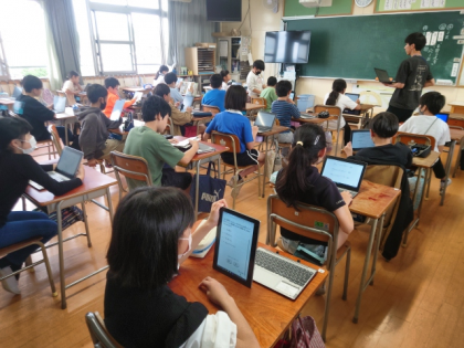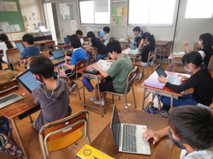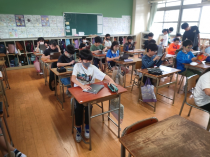 5年生は、国語、算数、理科、わくわく(教科横断型)問題に取り組んだ後、学習状況アンケートを行いました。