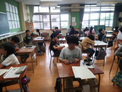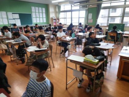 5年生は、国語、算数、理科、わくわく(教科横断型)問題に取り組んだ後、学習状況アンケートを行いました。