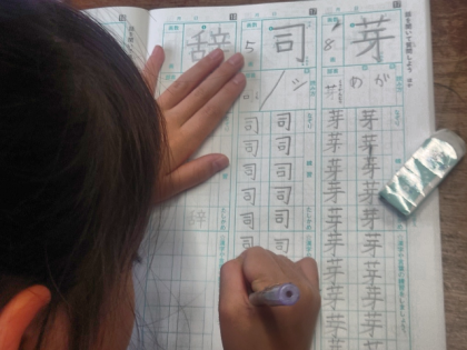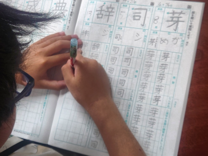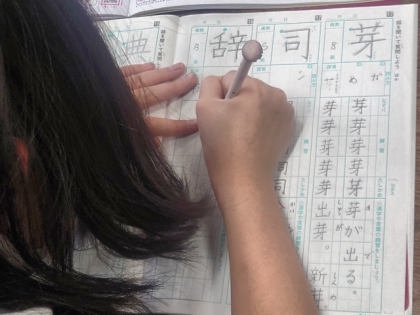 国語科の時間は、漢字ドリルを見ながら漢字ノートに「芽」「司」「辞」などの練習をしました。