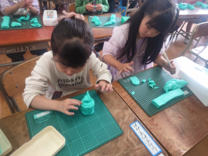 ねんどで思い思いの作品をつくっています。