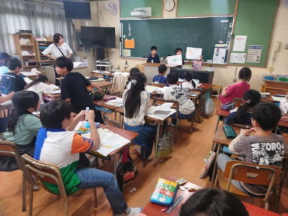 社会科の時間は、グループで作った都道府県クイズを発表しました。
