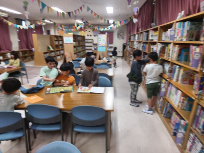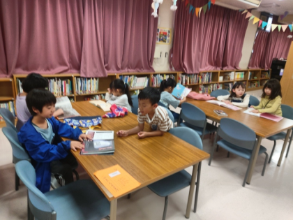 図書の時間は、図書室で自分の関心のある本を選んで、自分の席で静かに本を読みました。