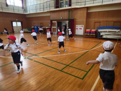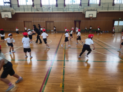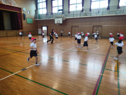 全員で輪になって、「おおかみさんが やってきた」などをしました。