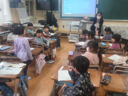 生活科の時間は、教室を歩いて、お友達と出会ったら自分の名前や好きなものを伝えて、握手をします。