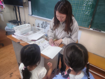 書き終わったら、担任にスタンプを押してもらっていました。