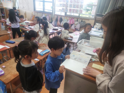 書き終わったら、担任にスタンプを押してもらっていました。