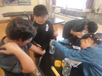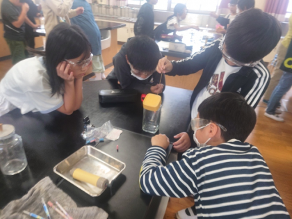 理科の時間は、ものが燃えるとき、空気中の気体にはどんな変化があるのか、実験で調べました。