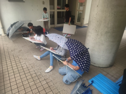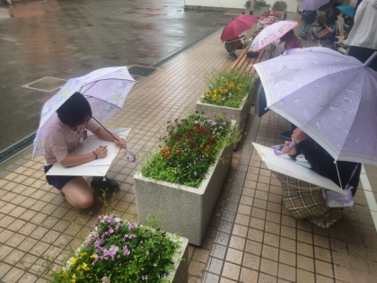 小雨が降る中でのスケッチでしたが、子どもたちは描き方を工夫しながら一生懸命取り組んでいました。