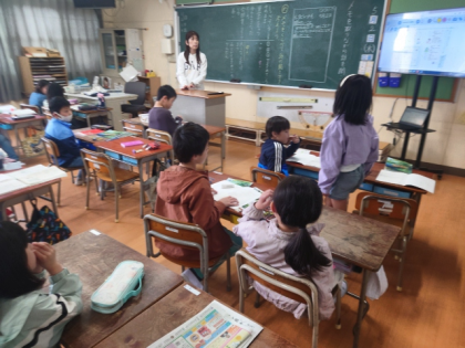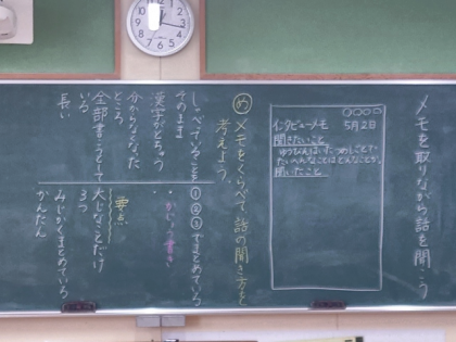 国語科の時間は、要点をメモするためには、どのようなことに気を付けて話を聞くとよいか学習しています。