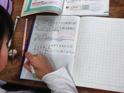 算数科の時間は、ともなって変わる2つの数量の関係について学習しています。