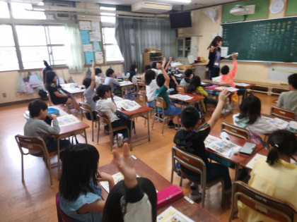 道徳の時間は、教科書の「気づいていなかったこと」の教材を通して、身のまわりにある「礼儀」について学習し、礼儀正しい行いが大切なわけについて考えました。