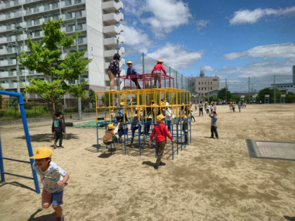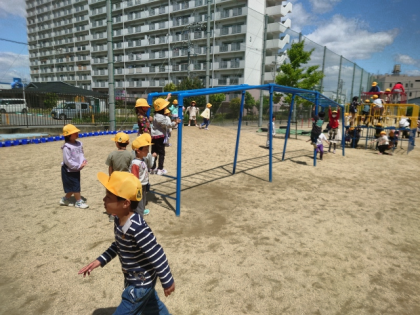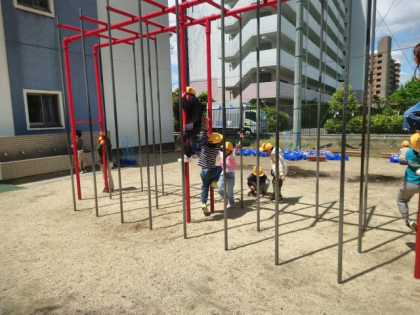 子どもたちが元気に外遊びしています。