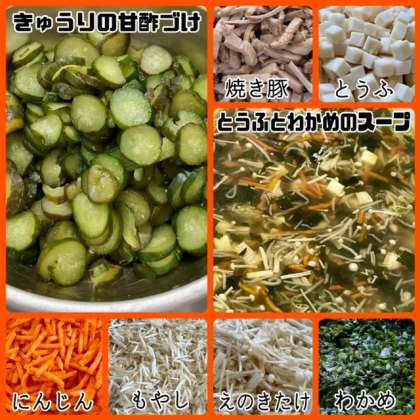 「とうふとわかめのスープ」は、焼き豚、とうふ、にんじん、もやし、えのきたけ、わかめを使用し、豚骨スープで旨みとコクを出しています。