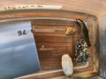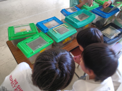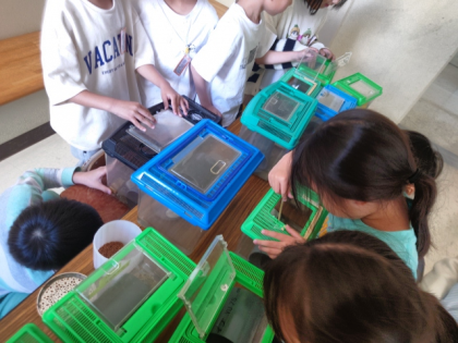 休み時間、2年生の子どもたちが一生懸命ザリガニのお世話をしています。