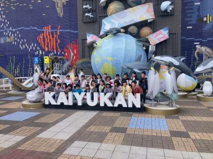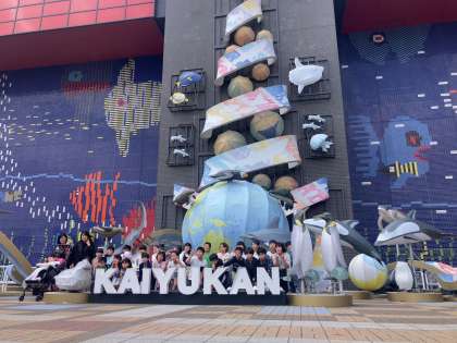海遊館前で集合写真を撮りました。