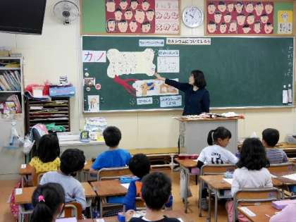 鶴見区の栄養教諭の先生に来ていただき、1年生で栄養指導の授業をしていただきました。今日は「カルシウムについて知ろう」と、カルシウムのはたらきについて学習しました。