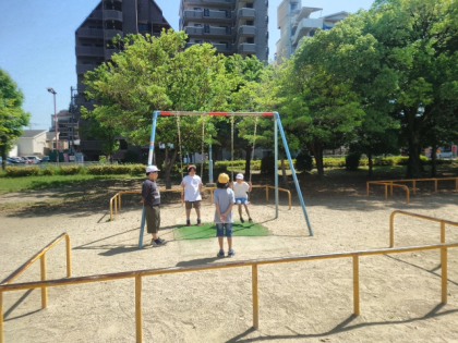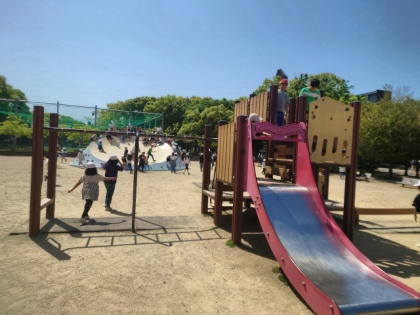 長居公園内の遊具で、みんなで遊びました。