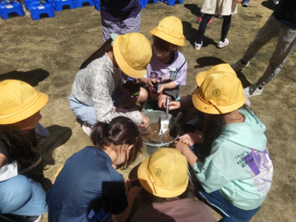 理科の時間には、ヘチマとヒョウタンの種をポットに植えました。