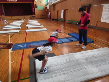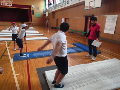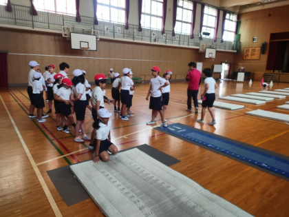 今日は、運動場と体育館で、5年生と6年生が体力テストを行いました。