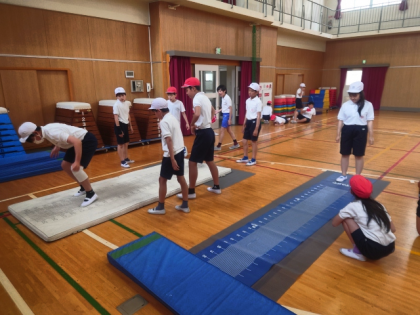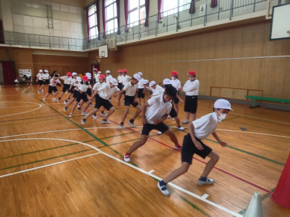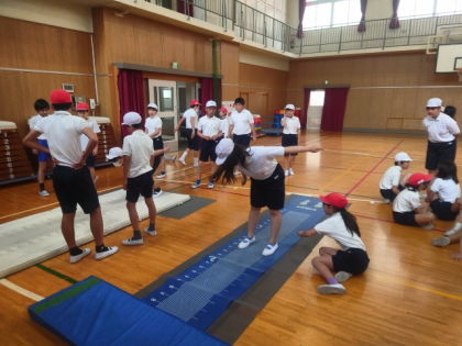 今日は、運動場と体育館で、5年生と6年生が体力テストを行いました。