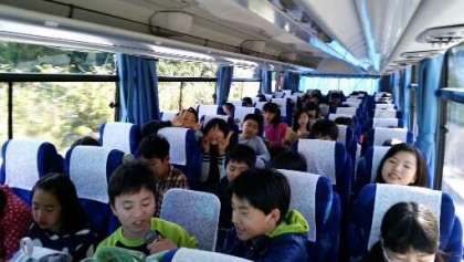 志摩ビーチホテルをバスで出発しました。今から鳥羽水族館に向かいます。バスのなかでは皆で歌って盛り上がっています。