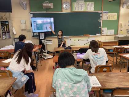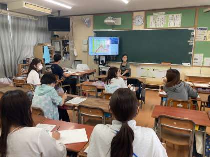 今日は、研究主任の教員を講師として、授業での資料提示や板書、話し合い、ふり返りの方法などについて研修を深めました。