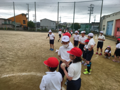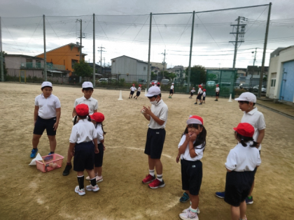 今日は、1年生が体力テストの「50m走」と「ソフトボール投げ」を計測する日です。
