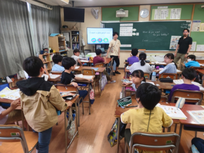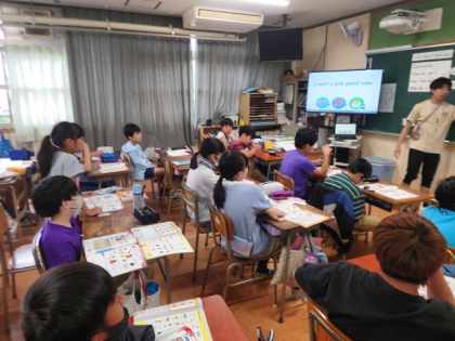 英語科の時間は、"What do you want?""I want 〜"などの表現を使って、誕生日にほしいプレゼントをたずね合う英語の表現について学習しました。