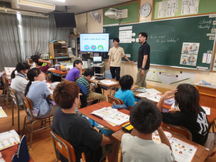英語科の時間は、"What do you want?""I want 〜"などの表現を使って、誕生日にほしいプレゼントをたずね合う英語の表現について学習しました。