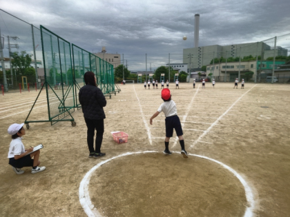 運動場で、2年生が体力テストを行いました。