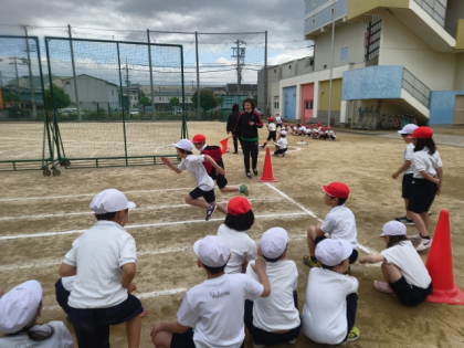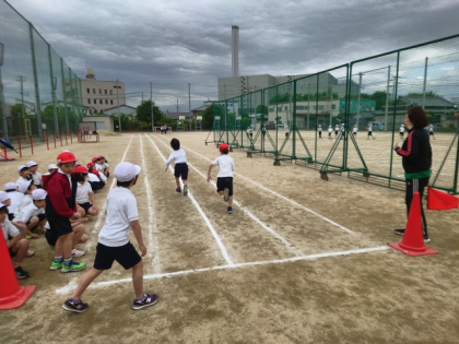 子どもたちは50m走やソフトボール投げに懸命に取り組んでいます。