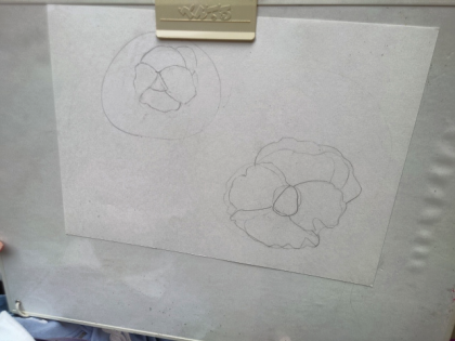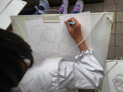 花の細かいところまで見ながら、ていねいに下描きをしています。
