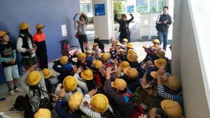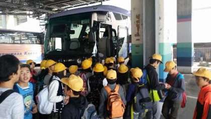 鳥羽水族館の見学を終えて、水族隊鳥羽水族館にちなんだクイズを出してくれました。今から学校に向けて出発します。