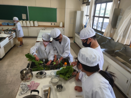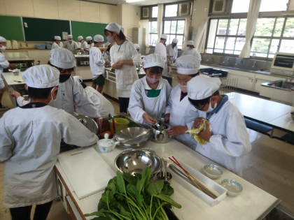 家庭科の時間は、調理実習を行いました。