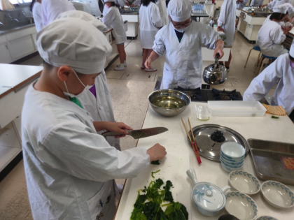 家庭科の時間は、調理実習を行いました。