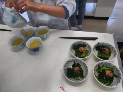 自分たちで作ったおひたしは、とてもおいしかったようです。