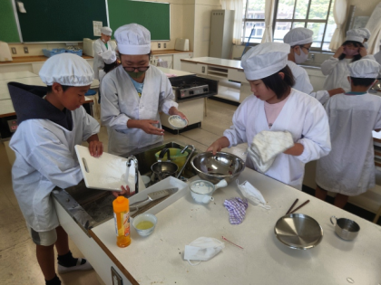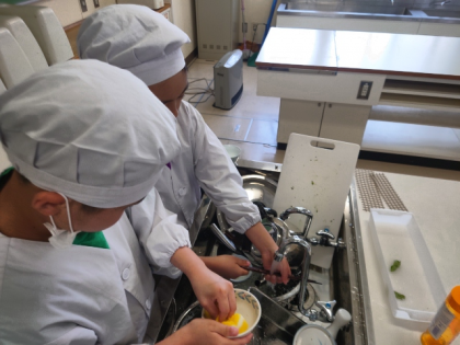 家庭科の時間は、調理実習を行いました。