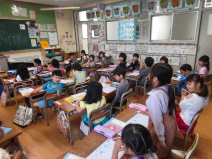 子どもたちは、「わ」のつく言葉をたくさん発表していました。