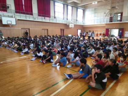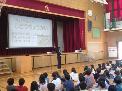 児童朝会の初めに、校長から新しく着任した教職員を紹介しました。