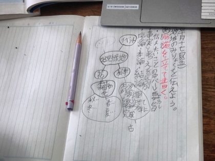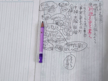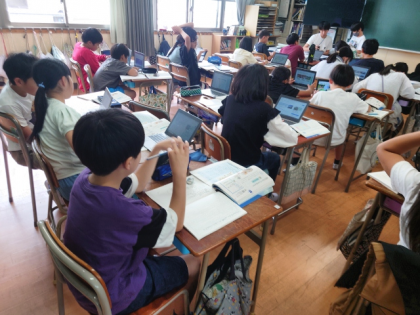 今日は、どんなことを伝えるか、学習用端末で調べ、ノートにまとめています。