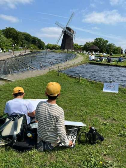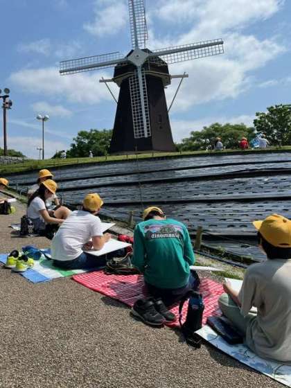 鶴見緑地で写生会をしました。