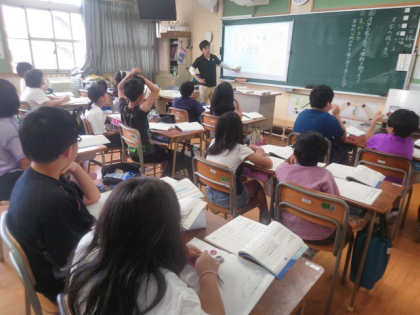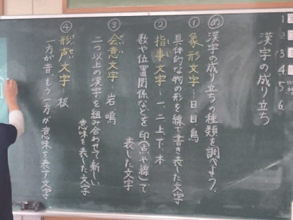 国語科の時間は、象形文字や指示文字、会意文字、形声文字など漢字の成り立ちについて学習しました。