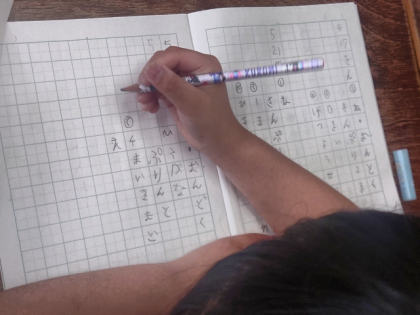 ならいたての「ひらがな」を使いながら、連絡帳を書いています。
