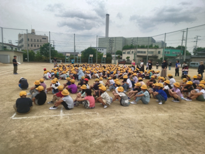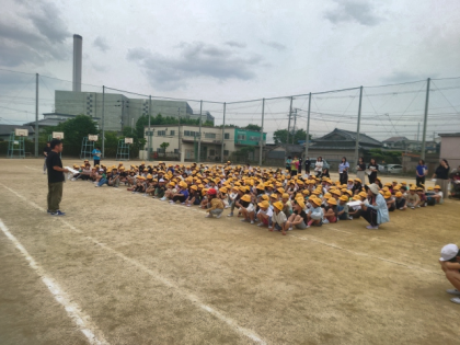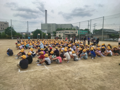 子どもたちは、前回の火災を想定した避難訓練のときよりもスムーズに運動場に集合することができました。