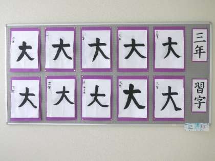 3年生の掲示板に、書写の授業で書いた「大」が掲示されました。