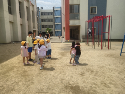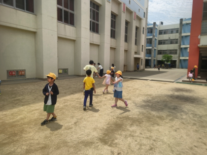 子どもたちが元気に外遊びしています。