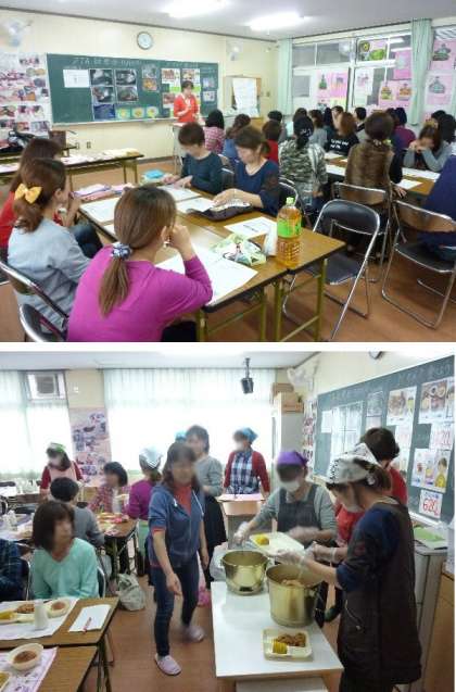 6年生が修学旅行中の11月10日に、PTA主催で給食の試食会がおこなわれました。子どもたちが毎日たべている給食について、鶴見区の栄養教諭さんより食についての説明もありました。