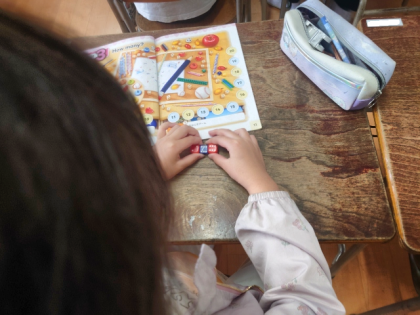 サイコロをふって、出た目の数が先生と同じなら「あたり」です。